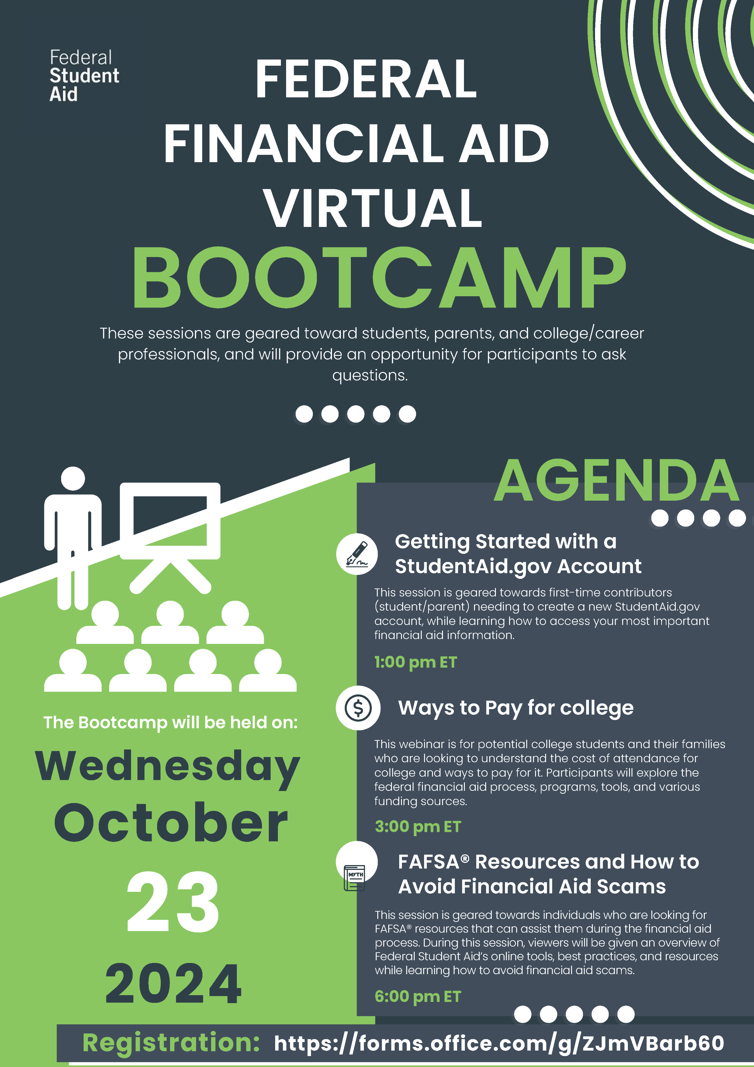 Federal Student Aid is holding a Federal Financial Aid Virtual Bootcamp Series.