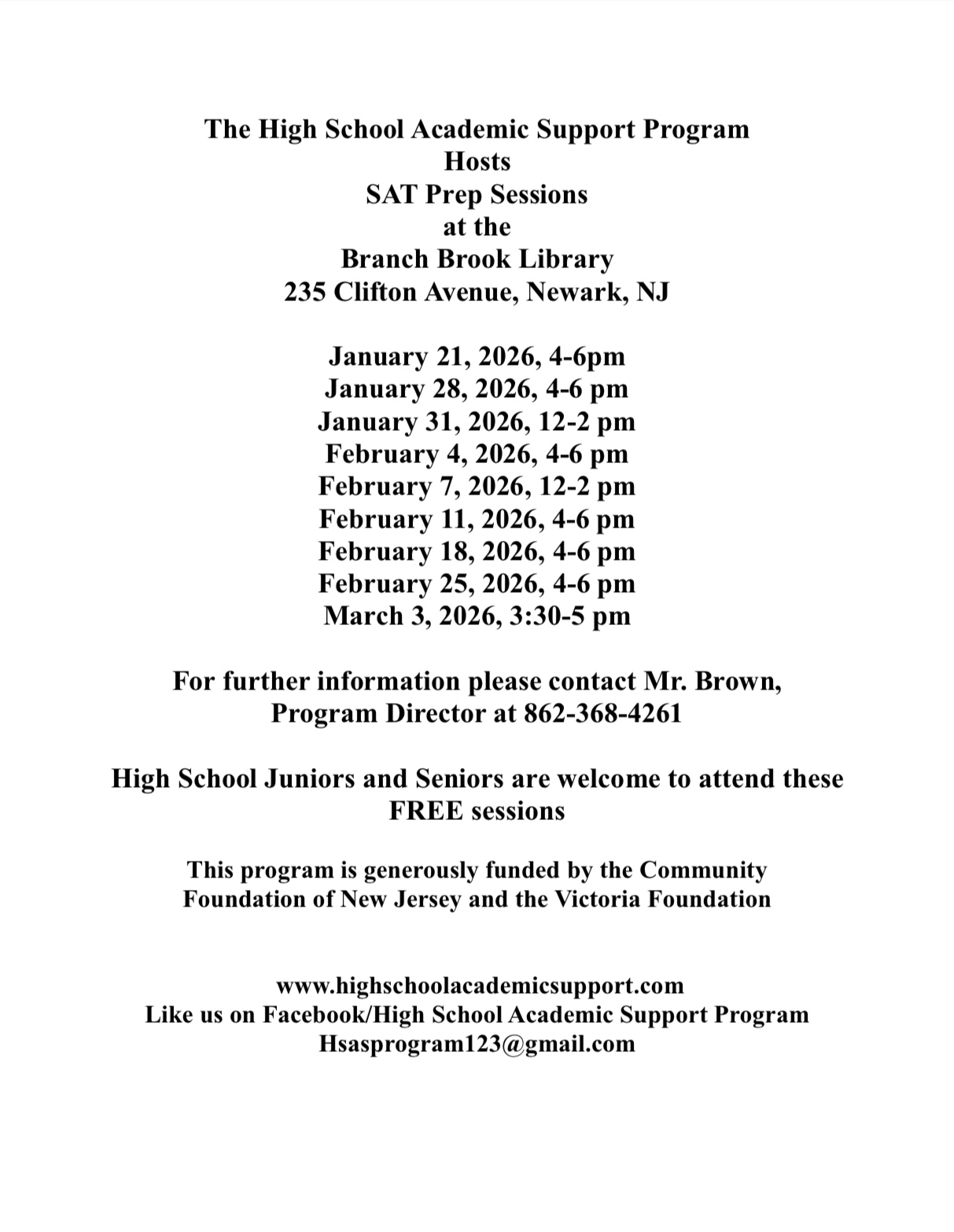 For further information please contact Mr. Brown, Program Director at (862) 368-4161
